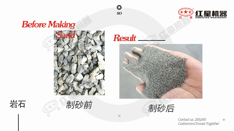巖石經(jīng)制砂設(shè)備處理前后對(duì)比圖