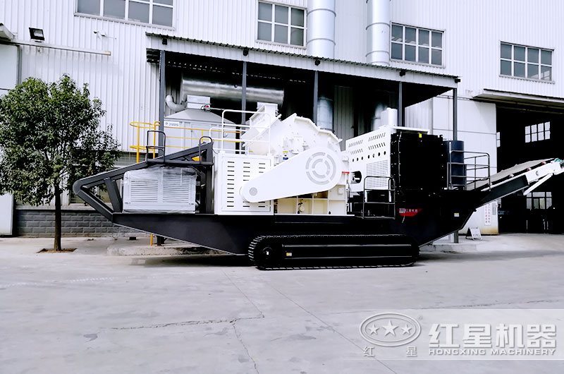 移動履帶碎石機已經(jīng)開到破碎現(xiàn)場