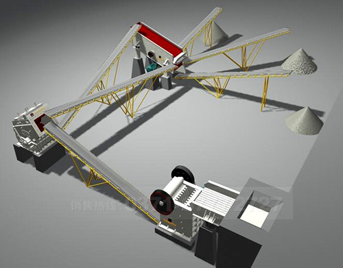 河卵石制沙工藝流程:料倉——振動給料機(jī)——粗破(顎式破碎機(jī))——輸送設(shè)備(輸送機(jī))——制沙機(jī)——輸送設(shè)備——篩分設(shè)備——成品或制沙機(jī)——洗砂機(jī)——成品。